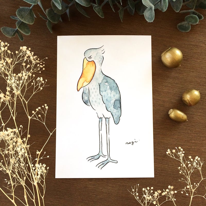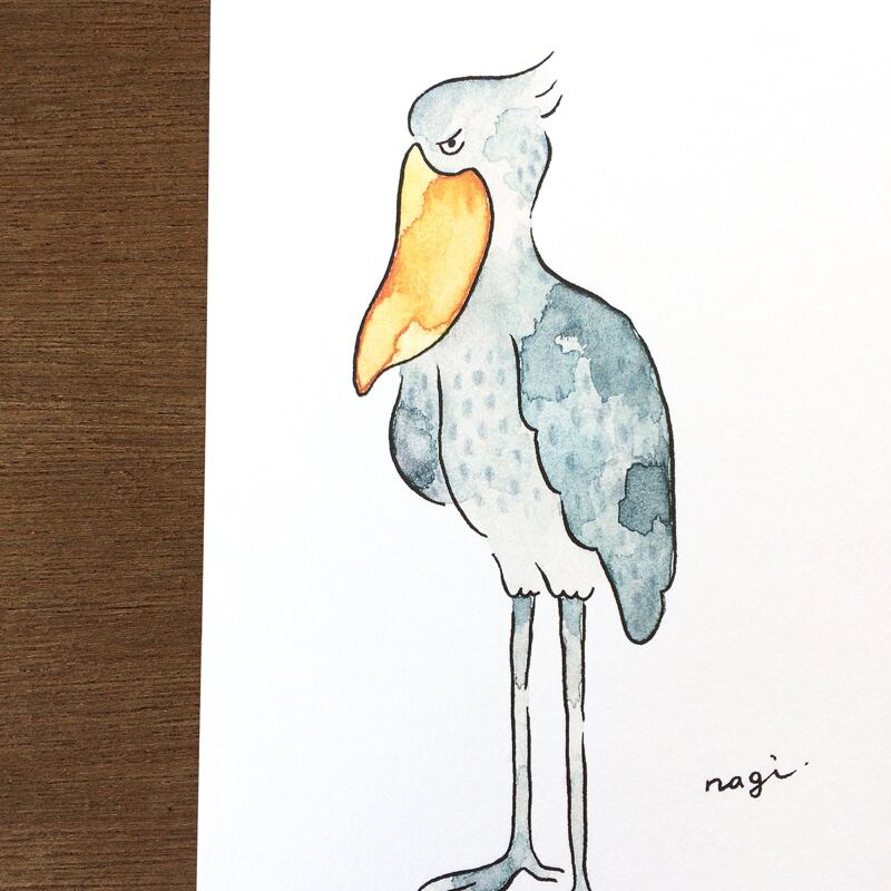 ハシビロコウ 水彩 アート イラスト 鳥 ナチュラル ミニインテリア ポスター 手描きイラスト 絵画